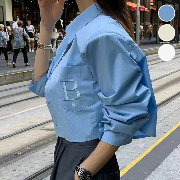 トップス ロゴ刺繍 クロップド シャツ カジュアル [AMELY by La-gemme]トップス ロゴ刺繍 クロップド シャツ カジュアル ショート丈 ゆったり 羽織り 長袖 レディース 韓国ファッション 【24aw-it35】【予約販売:15-20日】【送料無料】60込