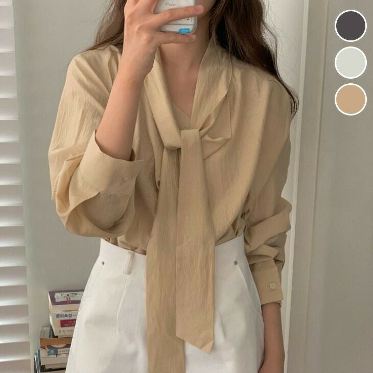 リボンタイ ドレープ ブラウス シアー 長袖 [AMELY by La-gemme]リボンタイ ドレープ ブラウス シアー 長袖 トップス シャツ 無地 透け感 きれいめ オフィス 春夏 おすすめ レディース オシャレ トレンド 人気 プチプラ 韓国ファッション【2631-fx】【予約販売:15-20日】【送料無料】メ込2