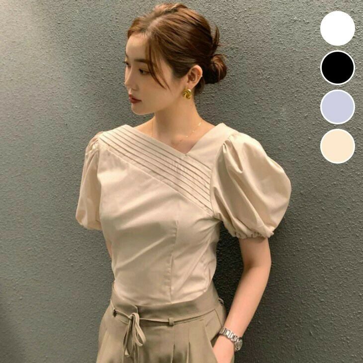 プリーツデザイントップス カジュアル レトロ [AMELY by La-gemme]プリーツデザイントップス カジュアル レトロ パフスリーブ シャツ オフショル風 おすすめ レディース オシャレ トレンド 人気 プチプラ 韓国ファッション 【6920-gt515】【予約販売:15-20日】【送料無料】メ込2