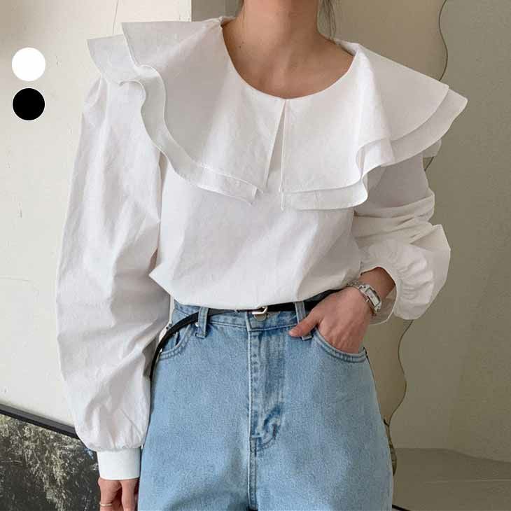 [AMELY by La-gemme]トップス シャツ ブラウス [AMELY by La-gemme]トップス シャツ ブラウス フリル襟 ビッグカラー パフ袖 シンプル 大人可愛い ガーリー シック シンプル 無地 デート 女子会 レディース おすすめ プチプラ 韓国ファッション 【atp302-011】【予約販売:15-20日】【送料無料】メ込2