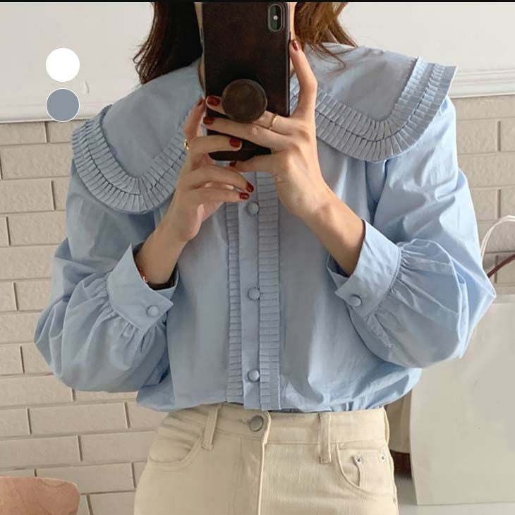 [AMELY by La-gemme]トップス シャツ ブラウス [AMELY by La-gemme]トップス シャツ ブラウス パフ袖 ビッグカラー レース調 無地 シンプル ベーシック ガーリー 大人可愛い おしゃれ デート 女子会 レディース おすすめ プチプラ 韓国ファッション 【atp302-022】【予約販売:15-20日】【送料無料】メ込2