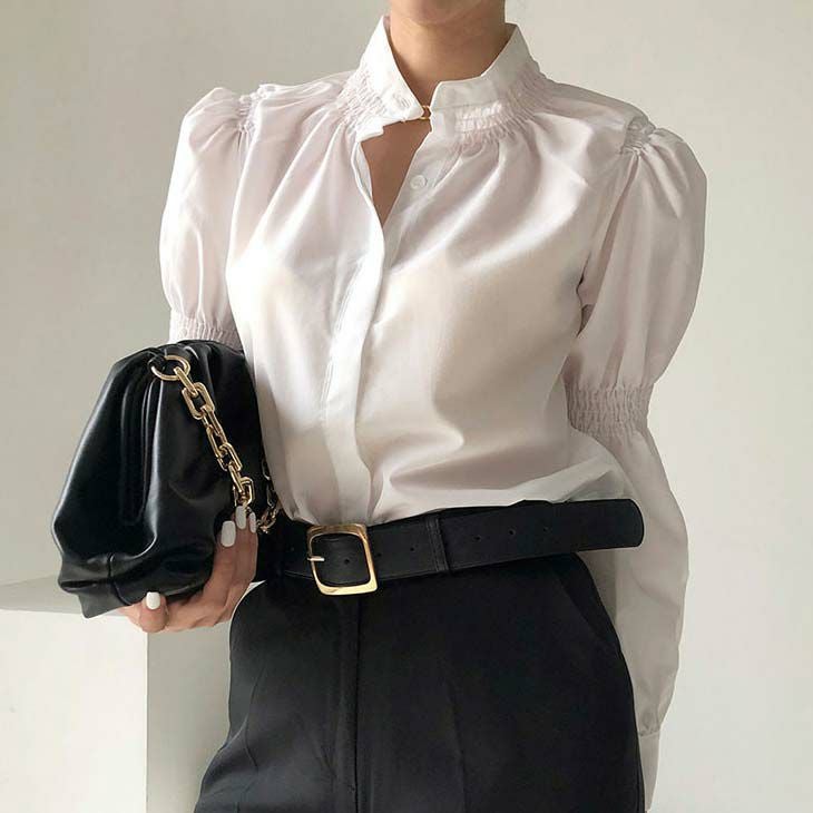 [AMELY by La-gemme]トップス シャツ ブラウス [AMELY by La-gemme]トップス シャツ ブラウス デザイン袖 スタンドカラー ルーズ感 上品 綺麗め おしゃれ シンプル 大人可愛い デート 女子会 レディース おすすめ プチプラ 韓国ファッション 【atp302-069】【予約販売:15-20日】【送料無料】メ込2