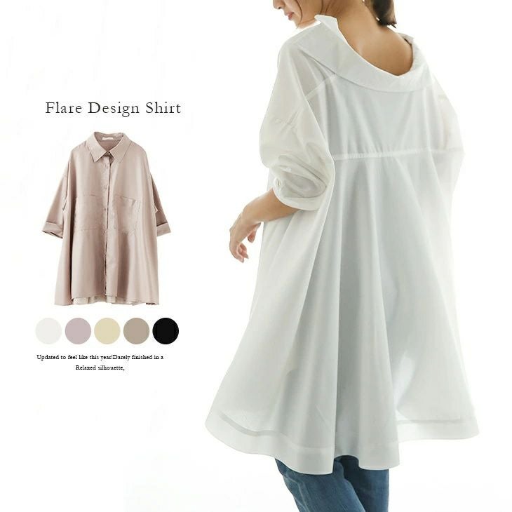 フレアシャツ シャツ レディース 透け感 シースルー フレアシャツ シャツ レディース 透け感 シースルー トップス ブラウス アンバランス ドロップショルダー 5分袖 7分袖 無地 大人 体型カバー ふんわり 大人女子 メール便 2025秋新作 フリー 【lgww-at3408】【即納:1-5営業日】【送料無料】メ込2