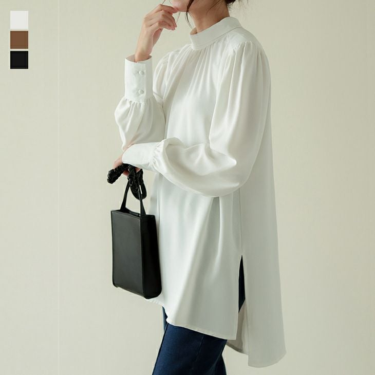 ハイネック バルーンスリーブ ブラウス レディース 長袖 ハイネック バルーンスリーブ ブラウス レディース 長袖 トップス シャツ ギャザー バルーン袖 体型カバー とろみ 上品 きれいめ 仕事 オフィス 可愛い ホワイト メール便 2025秋新作 フリー 【lgww-at4067】【即納:1-5営業日】【送料無料】メ込23
