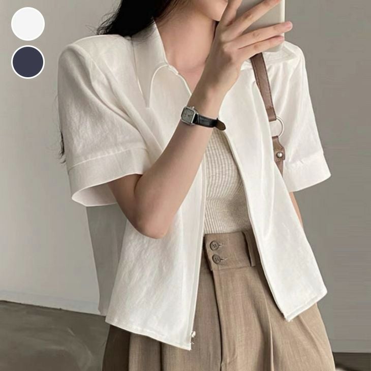 シャツ ジャケット半袖 五分袖 ジップアップ キレイめ [AMELY by La-gemme]シャツ ジャケット半袖 五分袖 ジップアップ キレイめ オフィス 羽織り UV対策 シンプル おすすめ おしゃれ レディース トレンド 人気 プチプラ 韓国ファッション 2025春夏新作 【aot404-177】【予約販売:15-20日】【送料無料】メ込2