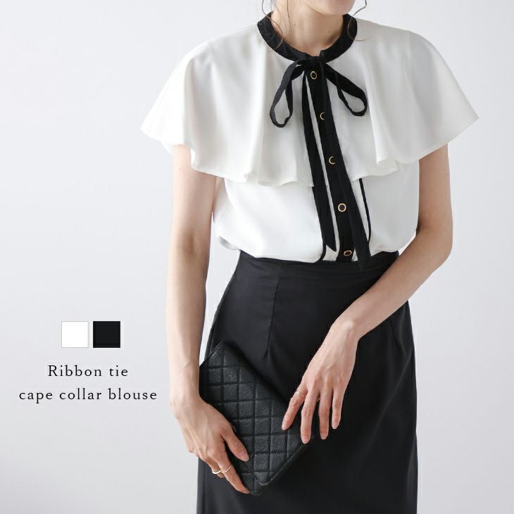 トップス ブラウス リボンタイ ケープカラー ボウタイ [AMELY by La-gemme]トップス ブラウス リボンタイ ケープカラー ボウタイ モノトーン 華やか 華奢見せ キレイめ 大人かわいい レディース おすすめ おしゃれ フリーサイズ メール便 2025春夏新作【atpss24-272】【即納:1-5営業日】【送料無料】ユ込2