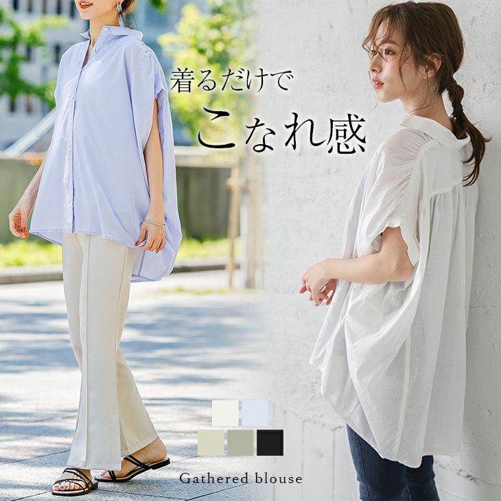 ギャザー ブラウス シャツ レディース 半袖 ギャザー ブラウス シャツ レディース 半袖 ゆったり トップス 大人 カジュアル 無地 おしゃれ 可愛い ホワイト メール便 2025春夏新作 フリー 【lgww-at2328】【即納:1-5営業日】【送料無料】ユ込3