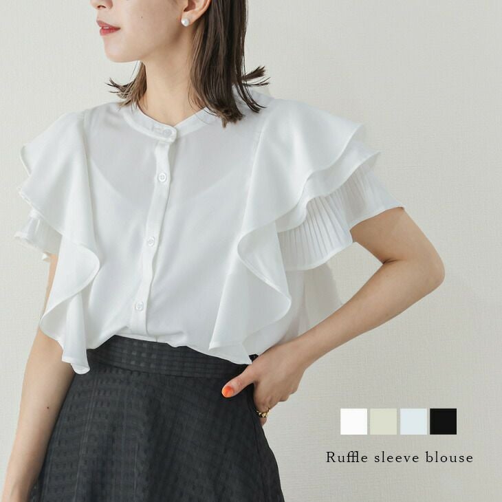 ブラウス ラッフルスリーブ プリーツ 半袖 トップス ブラウス ラッフルスリーブ プリーツ 半袖 トップス とろみ レディース 大人可愛い キレイめ おすすめ おしゃれ メール便 2025春夏新作 【lstp203-342】【即納:1-5営業日】【送料無料】ユ込2