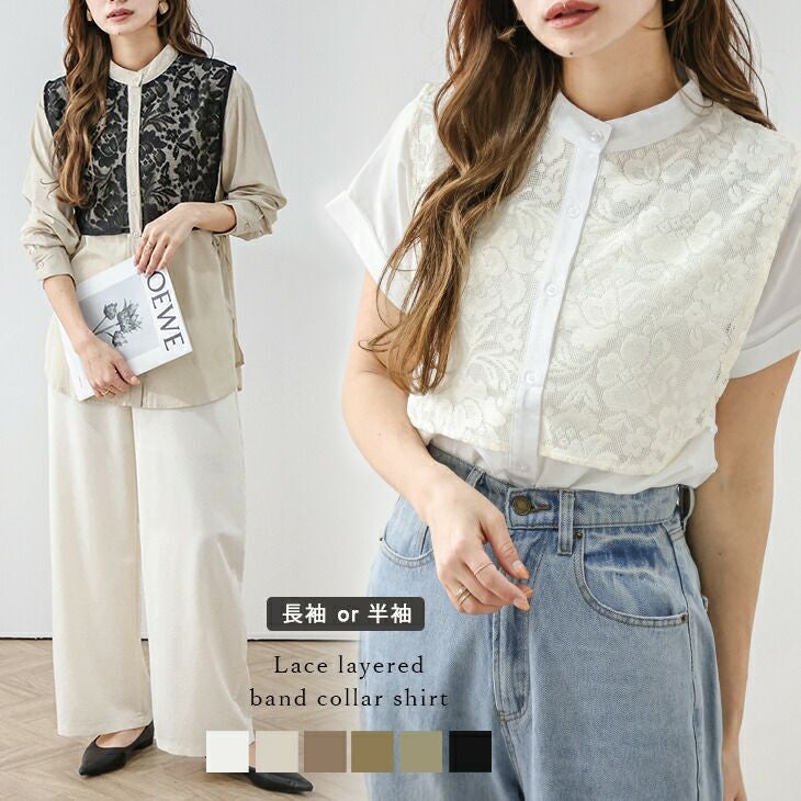 バンドカラーシャツ 半袖 レースレイヤード風 トップス バンドカラーシャツ 半袖 レースレイヤード風 トップス レディース 春夏カラー おすすめ おしゃれ 大人カジュアル フリーサイズ メール便 2025春夏 【lstp205-374】【即納:1-5営業日】【送料無料】ユ込2