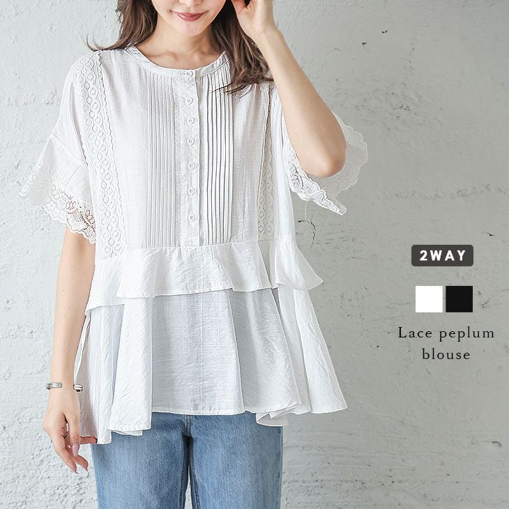 前後2WAY レースペプラムブラウス ブラウス レース ペプラム 前後2WAY レースペプラムブラウス ブラウス レース ペプラム 半袖 トップス レディース おすすめ おしゃれ 上品 ふんわり 透け感 柔らかい 軽やか ブラック フリーサイズ 2025春夏新作 【lstp301-357】【即納:1-5営業日】【送料無料】ユ込2