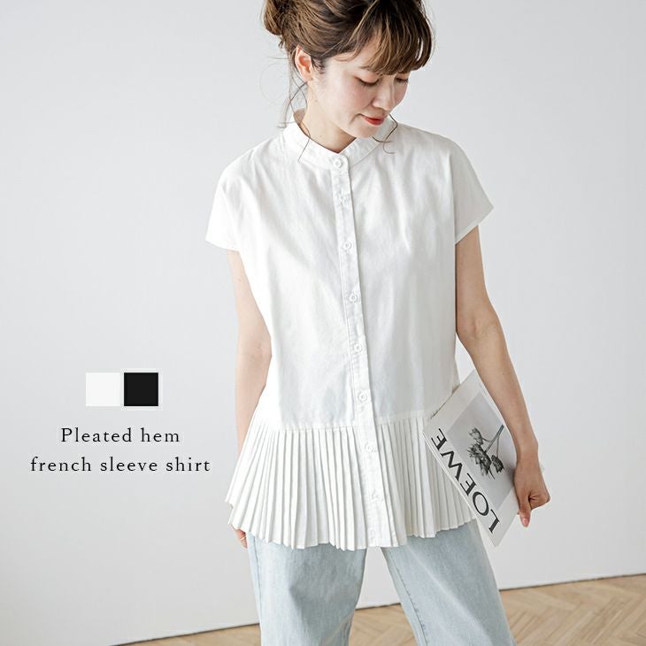 トップス シャツ プリーツ フレンチスリーブ トップス シャツ プリーツ フレンチスリーブ スタンドカラー コットン混 着映え 大人可愛い レディース おすすめ おしゃれ フリーサイズ メール便 2025春夏新作【lstpss24-302】【即納:1-5営業日】【送料無料】ユ込2