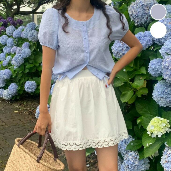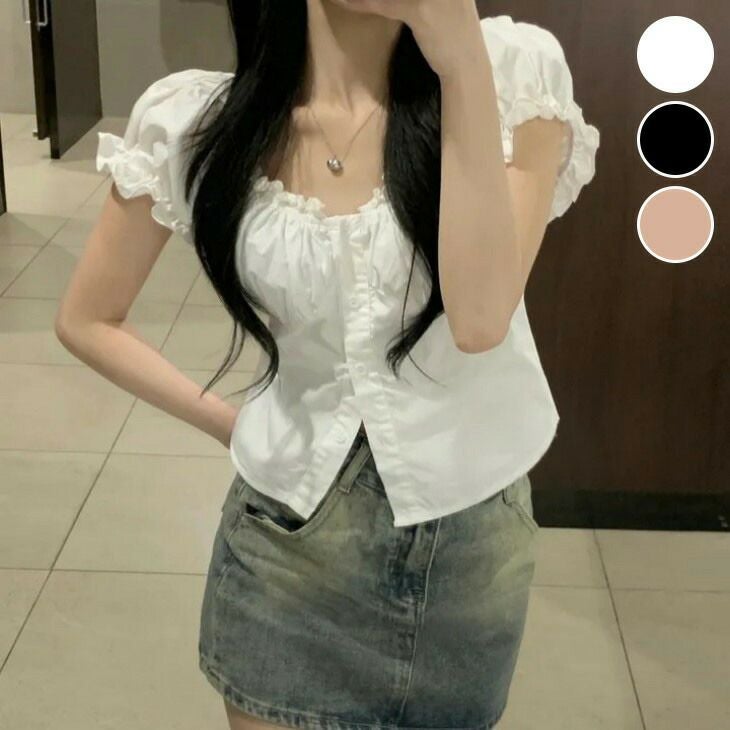 他の画像を見る ブラウス トップス フロントボタン パフスリーブ Uネック [AMELY by La-gemme]ブラウス トップス フロントボタン パフスリーブ Uネック ショート丈 ドロスト 半袖 夏 おすすめ レディース オシャレ トレンド 人気 プチプラ 韓国ファッション【8527-fx2】【予約販売:15-20日】【送料無料】メ込2 通常 ¥ 5,980 のところ ¥ 5,980 税込 詳細を見る お気に入りに登録する 在庫切れ