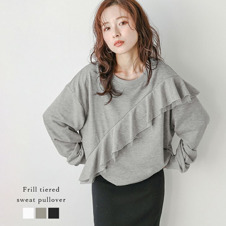 スウェット ティアードフリル ドロップショルダー トップス 【春夏半額SALE対象】 スウェット ティアードフリル チュール ドロップショルダー トップス ラウンドネック 長袖 レディース おすすめ おしゃれ フリーサイズ 2025春夏新作 【lstpaw24-854】【即納:1-5営業日】【送料無料】メ込4