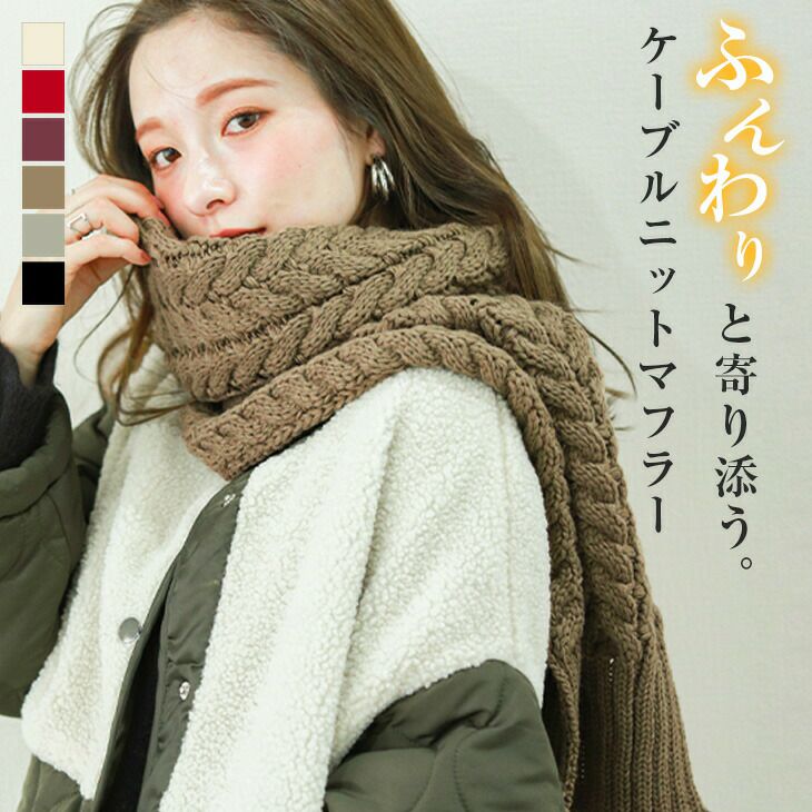 ケーブル編み ニット マフラー 防寒 暖かい ケーブル編み ニット マフラー 防寒 暖かい ボリューム 柔らか シンプル お洒落 きれいめ オフィス カジュアル ガーリー レディース ギフト プレゼント 春夏 韓国ファッション【wwj-10】【即納:1-5営業日】【送料無料】メ込4