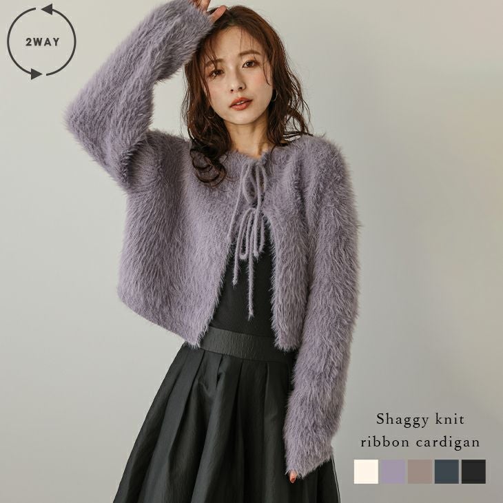 カーディガン ニット 前後2way リボン 大人可愛い 【秋冬半額SALE対象】 [AMELY by La-gemme]カーディガン シャギーニット 前後2way リボン 大人可愛い ショート丈 レイヤード レディース おすすめ おしゃれ フリーサイズ 2025春夏新作【aotaw24-718】【即納:1-5営業日】【送料無料】80込