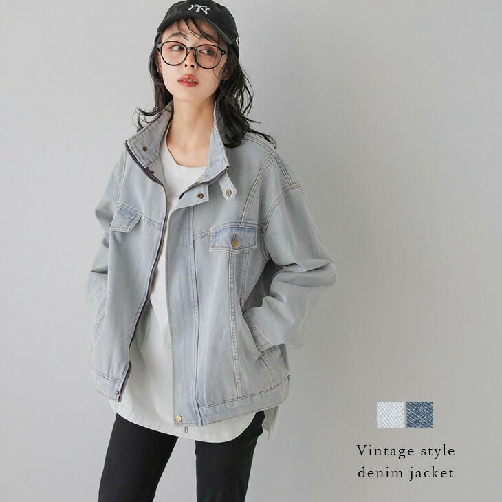 ヴィンテージ風 デニムジャケット ウォッシュ加工 【秋冬半額SALE対象】 [AMELY by La-gemme]ヴィンテージ風 デニムジャケット ウォッシュ加工 オーバーサイズ ドロップショルダー スタンドネック レディース おすすめ おしゃれ フリーサイズ 2025春夏新作 【aotaw24-920】【即納:1-5営業日】【送料無料】60込