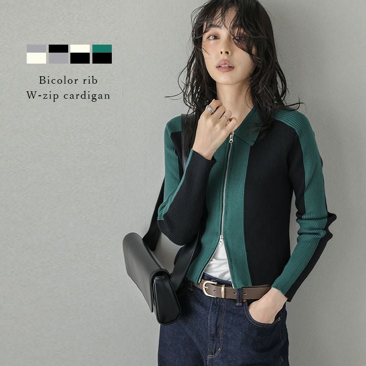 バイカラー リブニット カーディガン ダブルジップ 着痩せ 【秋冬半額SALE対象】 [AMELY by La-gemme]バイカラー リブニット カーディガン ダブルジップ 着痩せ メリハリ トップス レディース おすすめ おしゃれ 2025秋冬新作 【aotaw25-1492】【即納:1-5営業日】【送料無料】メ込2