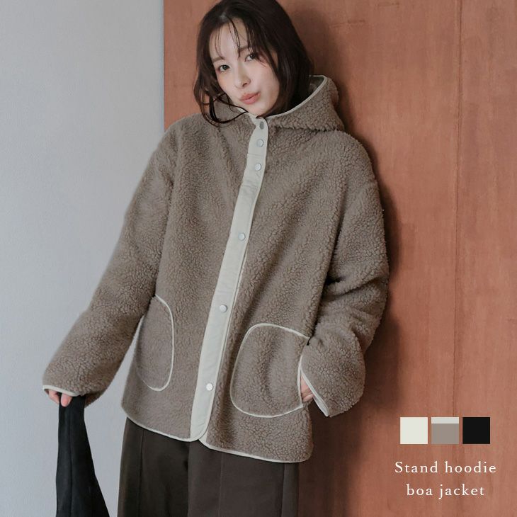 スタンドネック フーディー ボアジャケット 防寒 【秋冬半額SALE対象】 [AMELY by La-gemme]スタンドネック フーディー ボアジャケット 防寒 小顔見え もこもこ 大人かわいい ミドル丈 異素材MIX レディース おすすめ おしゃれ フリーサイズ 2025秋冬新作【aotaw25-1749】【即納:1-5営業日】【送料無料】宅込