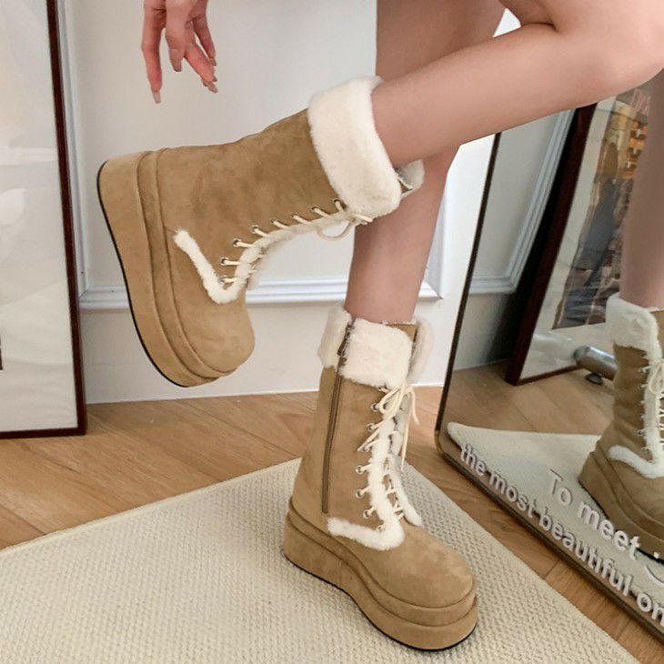ボアブーツ ミディアム 暖か 厚底 レースアップ 【秋冬半額SALE対象】 【訳アリ】[AMELY by La-gemme]ボアブーツ ミディアム 暖か 厚底 レースアップ 美脚 脚長効果 歩きやすい 防寒 おすすめ おしゃれ レディース トレンド 人気 プチプラ 韓国ファッション 2025秋冬新作 【ash409-032】【即納:1-5営業日】【送料無料】宅込
