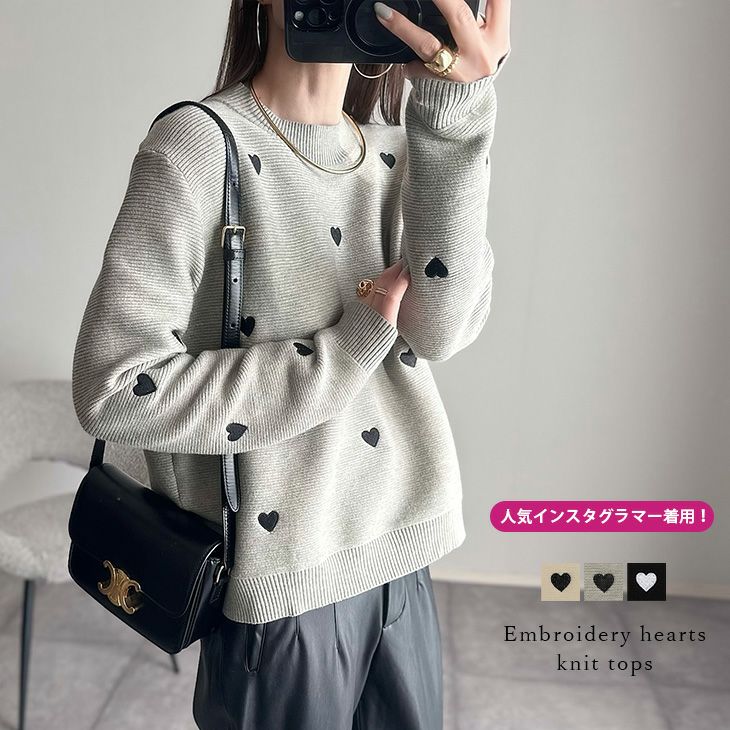 ハートニットトップス 刺繍 大人可愛い トップス 【秋冬半額SALE対象】 [AMELY by La-gemme]ハートニットトップス 刺繍 ラウンドネック 大人可愛い セーター レディース おすすめ おしゃれ フリーサイズ メール便 2025春夏新作【atp306-367】【即納:1-5営業日】【送料無料】メ込4
