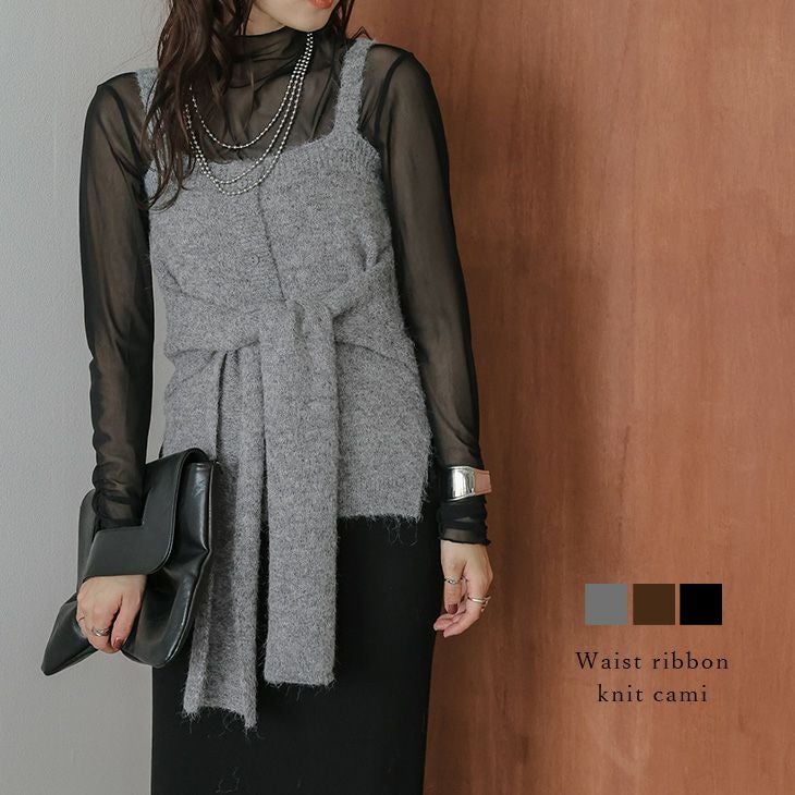 ニットキャミ レイヤード ウエストリボン 重ね着 ウールライク 【秋冬半額SALE対象】 [AMELY by La-gemme]ニットキャミ レイヤード ウエストリボン 重ね着 ウールライク レイヤード スタイルアップ 大人カジュアル モード トップス レディース おすすめ おしゃれ 2025秋冬新作 【atpaw25-1610】【即納:1-5営業日】【送料無料】メ込2