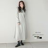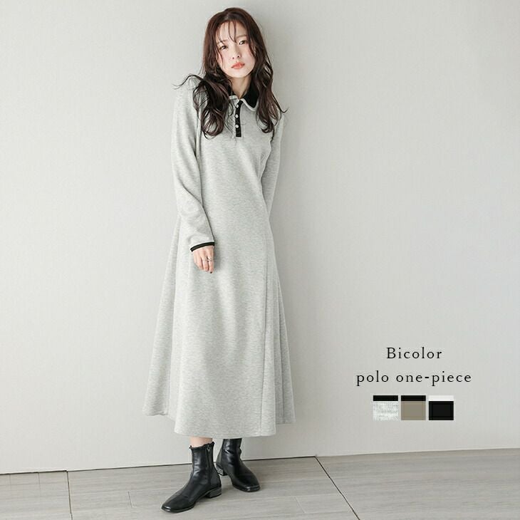 ロングワンピース ポロ襟 ラウンドカラー バイカラー 配色カラー 【秋冬半額SALE対象】 [AMELY by La-gemme]ロングワンピース ポロ襟 ラウンドカラー バイカラー 配色カラー パイピング ダンボールニット Aラインシルエット 長袖 襟付き くるみボタン レディース おすすめ おしゃれ 2025秋冬新作 【awpaw25-1549】【即納:1-5営業日】【送料無料】宅込