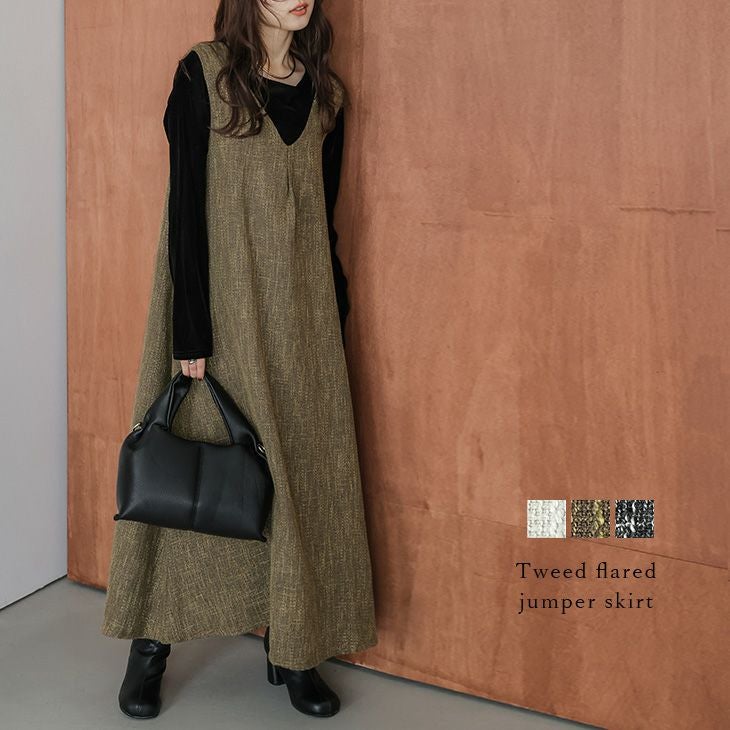 ワンピース Aライン フレア ツイード調 Vネック 【秋冬半額SALE対象】 [AMELY by La-gemme]ワンピース Aライン フレア ツイード調 Vネック ロングスカート キレイめ 大人フェミニン オケージョン レディース おすすめ おしゃれ 2025秋冬新作 【awpaw25-1658】【即納:1-5営業日】【送料無料】宅込