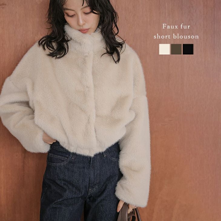 フェイクファー ブルゾン スタンドカラー ショート丈 【秋冬半額SALE対象】 フェイクファー ブルゾン スタンドカラー ショート丈 ドロップショルダー 秋冬アウター スナップボタン 長袖 レディース おすすめ おしゃれ 2025秋冬新作 【lsotaw25-1701】【即納:1-5営業日】【送料無料】宅込