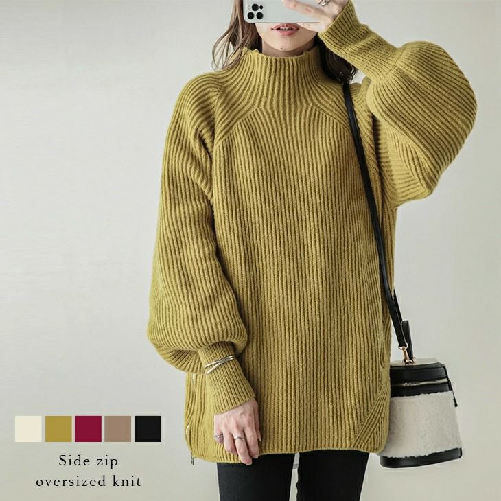 トップス ニット ハイネック 小顔効果 サイドジップ 【秋冬半額SALE対象】 トップス ニット ハイネック 小顔効果 サイドジップ オーバーサイズ ボリューム袖 大人可愛い 抜け感 レディース おすすめ おしゃれ フリーサイズ 2025秋新作 【lstp210-360】【即納:1-5営業日】【送料無料】宅込