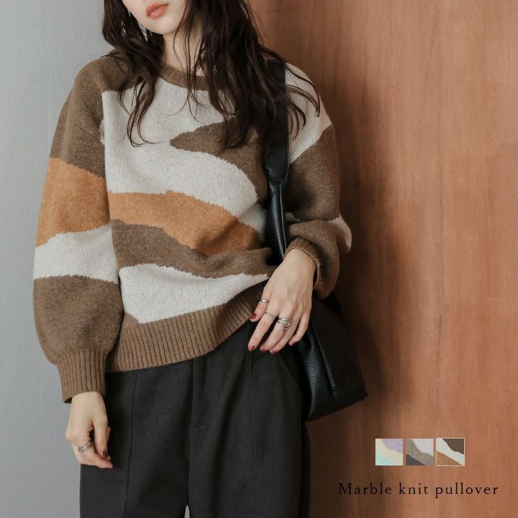 ニット プルオーバー ジャガード マーブル 手書き風 【秋冬半額SALE対象】 ニット プルオーバー ジャガード マーブル 手書き風 ニュアンス ぽわん袖 大人かわいい カジュアル レディース おすすめ おしゃれ フリーサイズ 2025秋冬新作【lstpaw25-1545】【即納:1-5営業日】【送料無料】宅込