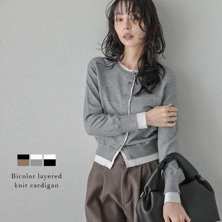 レイヤード カーディガン ニット バイカラー 重ね着風 【秋冬半額SALE対象】 レイヤード カーディガン ニット バイカラー 重ね着風 シンプル 無地 クルーネック 着痩せ ミディアム トップス レディース おすすめ おしゃれ 2025秋冬新作 【lstpaw25-1608】【予約販売:4月2日入荷予定順次発送】【送料無料】メ込2