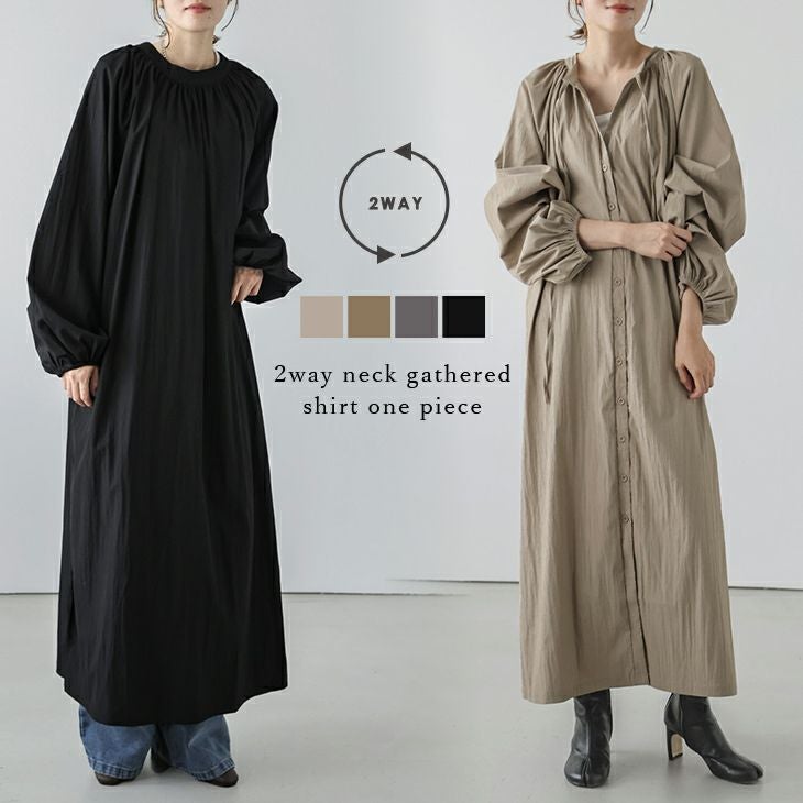 2way シャツワンピース キーネック バンドカラー 【秋冬半額SALE対象】 2way シャツワンピース キーネック バンドカラー ボリュームスリーブ クルーネック レディース おすすめ おしゃれ ブラック フリーサイズ メール便 2025春夏新作 【lswp301-87a】【即納:1-5営業日】【送料無料】メ込2