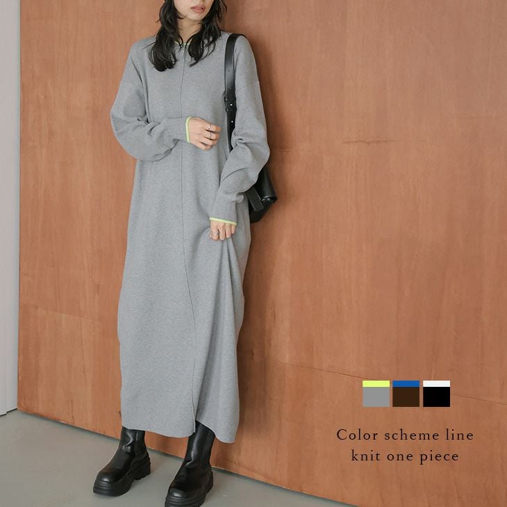バイカラー リブニット ワンピース リラックス 体型カバー 【秋冬半額SALE対象】 バイカラー リブニット ワンピース リラックス 体型カバー 着痩せ 配色デザイン 長袖 レディース おすすめ おしゃれ 2025秋冬新作 【lswpaw25-1791】【即納:1-5営業日】【送料無料】宅込