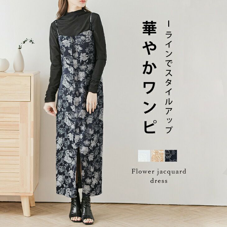 ワンピース ロング スリット キャミワンピ 花柄 [AMELY by La-gemme]ワンピース ロング スリット キャミワンピ 花柄 ジャガード ノースリーブ 華やか Iライン 綺麗 上品 ドレス メール便 2025秋新作【awp301-598】【即納:1-5営業日】【送料無料】メ込2