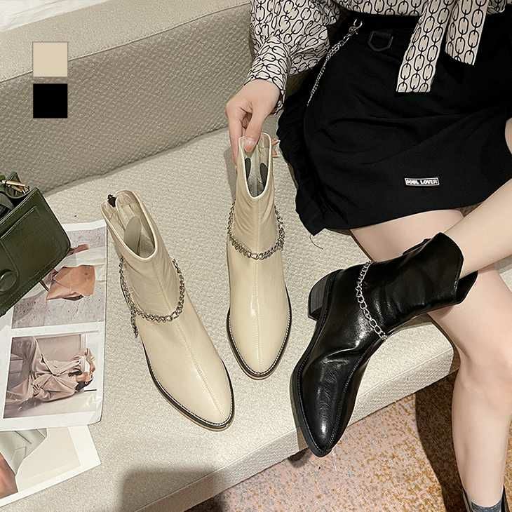 ウエスタンブーツ ショートブーツ ウエスタンブーツ ショートブーツ カジュアル トレンド おしゃれ 楽ちん ヒール チェーン 履きやすい ポインテッドトゥ 韓国ファッション【k3-bt913】【即納:1-5営業日】【送料無料】80込