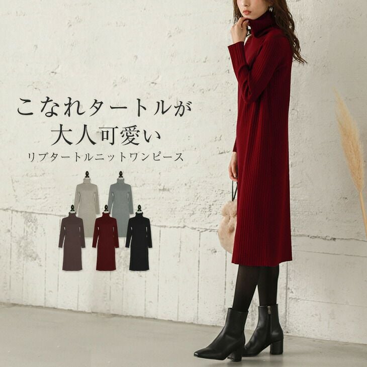 リブ ニットワンピース ワンピース タートルネック 長袖 【残りわずか!在庫限り超価格】リブ ニットワンピース ワンピース タートルネック 長袖 レディース 膝下 ミディアム丈 ロング 大人 きれいめ カジュアル 仕事 オフィス ブラック メール便 2025秋新作 フリー 【lgww-at3125】【即納:1-5営業日】【送料無料】メ込4