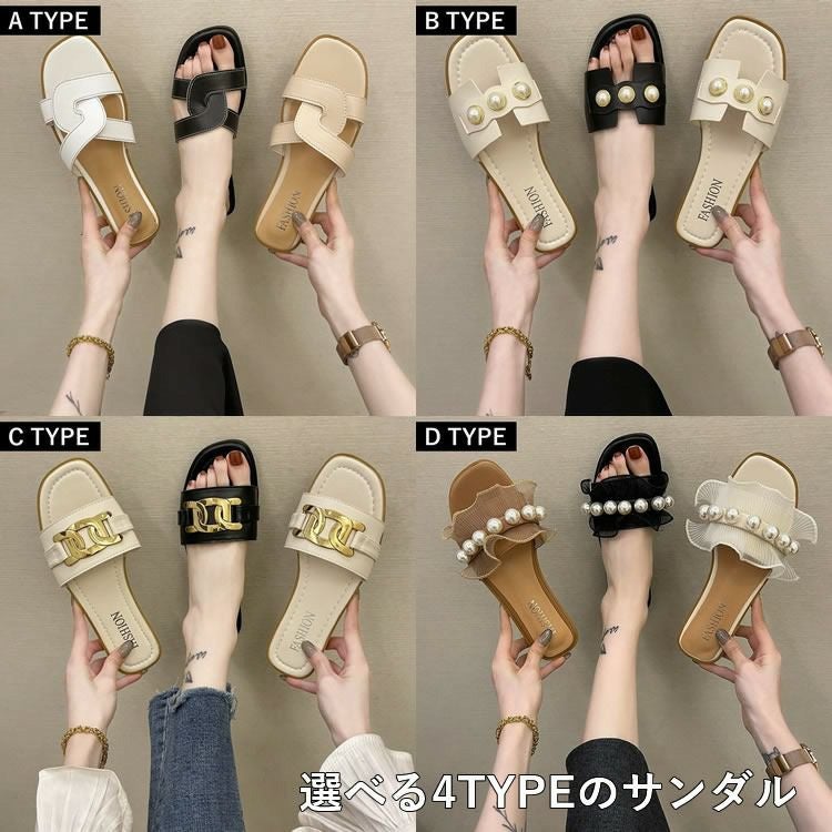 スクエアトゥ フラット ミュールサンダル 4type レディース スクエアトゥ フラット ミュールサンダル 4type レディース ぺたんこ きれいめ 上品 ビット パール フリル スリッパ オフィスサンダル オープントゥ ナチュラル 靴 シューズ 2025春夏新作【lgww-at3266】【即納:1-5営業日】【送料無料】メ込2