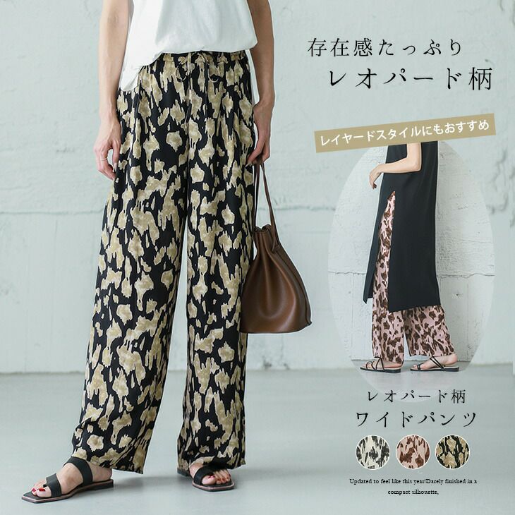 レオパード柄 ワイドパンツ レディース リラックスパンツ レオパード柄 ワイドパンツ レディース リラックスパンツ ウエストゴム 夏 楽ちん ゆったり ヒョウ柄 ボトムス 自宅 おうち服 トレンド カジュアル ブラック ホワイト メール便 2025秋新作 M/L 【lgww-at3376】【即納:1-5営業日】【送料無料】ユ込3