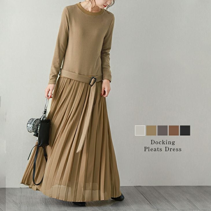 セットアップ風 プリーツ ワンピース 大人ワンピ レディース セットアップ風 プリーツワンピース ワンピース 大人ワンピ レディース プリーツ ベルト付 マキシ丈 ロング ワンピ 上品 スウェット Aライン きれいめ おしゃれ 可愛い ブラック 2025秋新作 M/L 【lgww-at4235】【即納:1-5営業日】【送料無料】60込