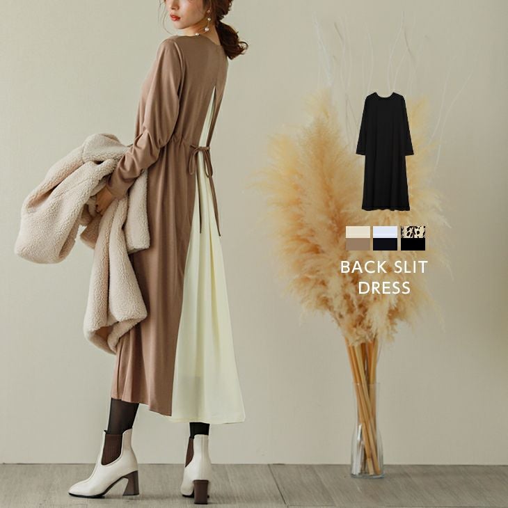 バックスリット 異素材 ワンピース レディース 長袖 バックスリット 異素材 ワンピース レディース 長袖 切替 マキシ丈 ロング丈 Aライン 体型カバー ノースリーブ 重ね着風 2025春夏 【lgww-at4295】【即納:1-5営業日】【送料無料】【圧縮発送】ヤ込