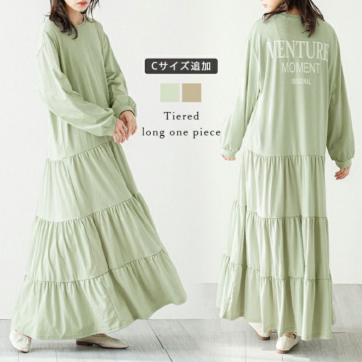 ティアード ロングワンピース ワンピース 長袖 レディース ティアード ロングワンピース ワンピース 長袖 レディース ワンピ マキシ丈 コットン バックロゴ 低身長さん ゆったり 体型カバー Aライン カジュアル フレア ブラック メール便 2025秋新作 【lgww-at5004】【即納:1-5営業日】【送料無料】メ込4