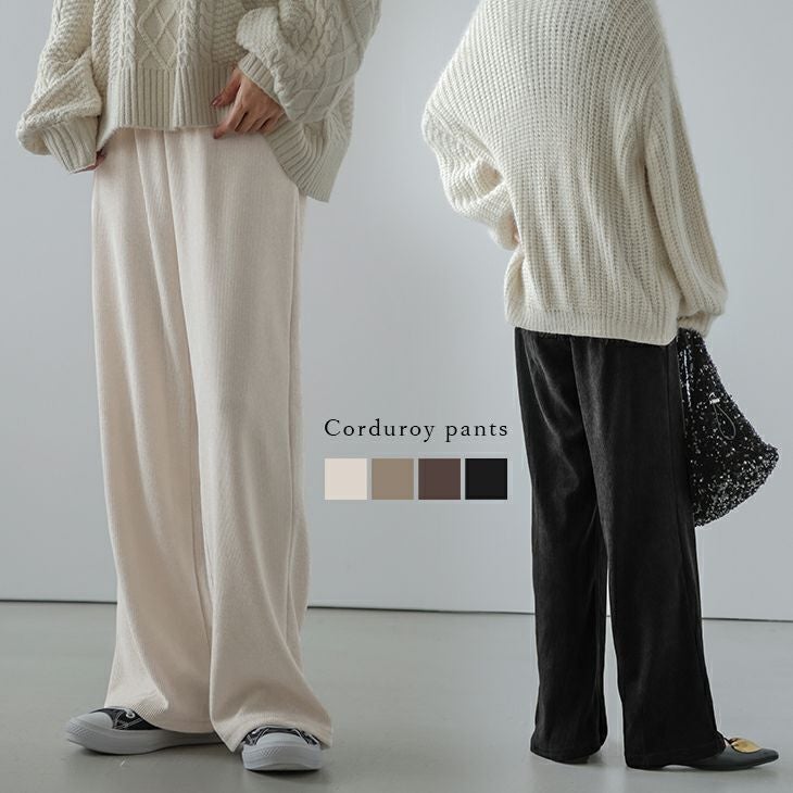 コーデュロイ セミワイド パンツ ウエストゴム ロングパンツ コーデュロイ セミワイド パンツ ウエストゴム ロングパンツ ボトムス レディース 伸縮性 おすすめ おしゃれ ブラック メール便 2025春夏新作 【lsbt304-480】【即納:1-5営業日】【送料無料】メ込3