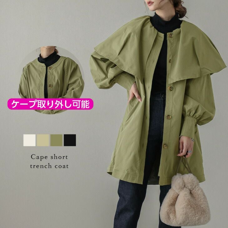 ショートトレンチコート アウター ケープ ノーカラー ボリューム ショートトレンチコート アウター ボリュームアウター ケープ ノーカラー ボリューム袖 レディース おすすめ おしゃれ ブラック フリーサイズ メール便 2025秋新作 【lsot205-366】【即納:1-5営業日】【送料無料】ヤ込1
