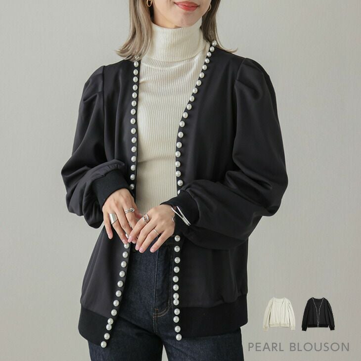 ブラウス 長袖 トップス レディース おすすめ 【春夏半額SALE対象】 パールブルゾン ブルゾン アウター ジャケット ライトブルゾン 長袖 パール レディース おすすめ おしゃれ フリーサイズ 【lsot207-647】【即納:1営業日】【送料無料】ヤ込1