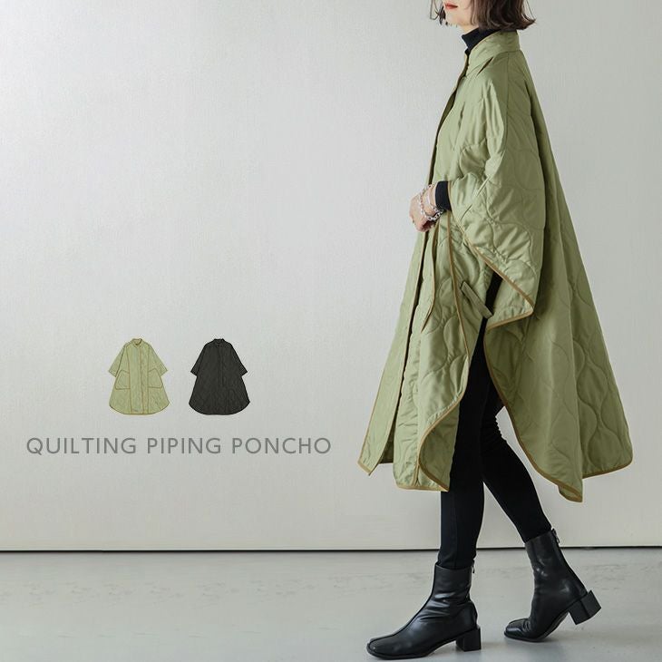 パイピングポンチョ キルティング付 ポンチョ アウター パイピングポンチョ キルティング付 ポンチョ アウター レディース おすすめ おしゃれ ブラック フリーサイズ 2025秋新作 【lsot207-662】【即納:1-5営業日】【送料無料】宅込