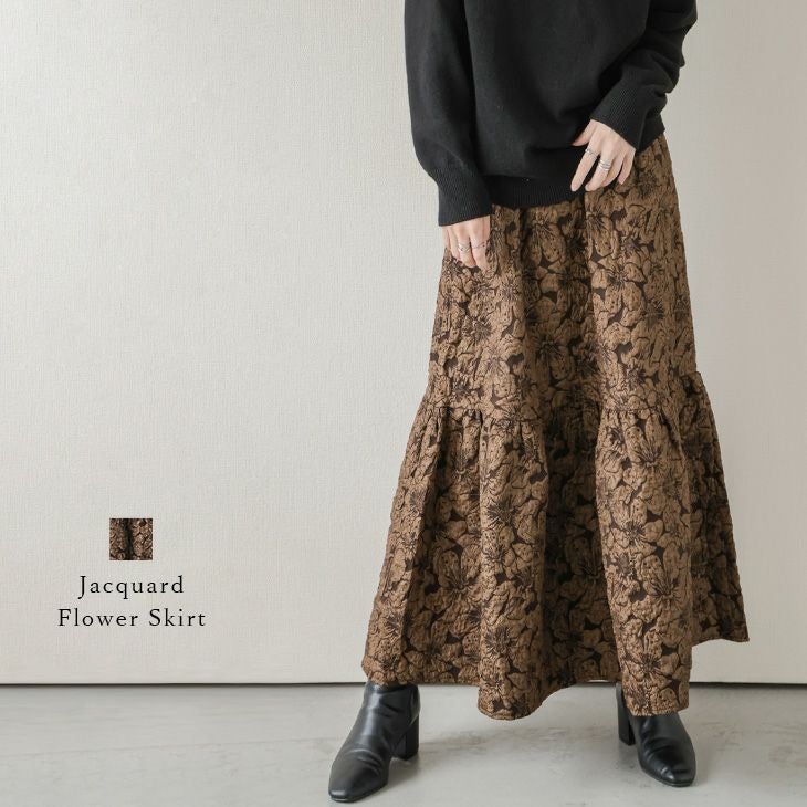 ボトムス スカート ロング丈 ジャガード風 花柄 ボトムス スカート ロング丈 ジャガード風 花柄 華やか 上品 ティアード レディース おすすめ おしゃれ フリーサイズ メール便 2025春夏 【lssk301-434】【即納:1-5営業日】【送料無料】ヤ込1