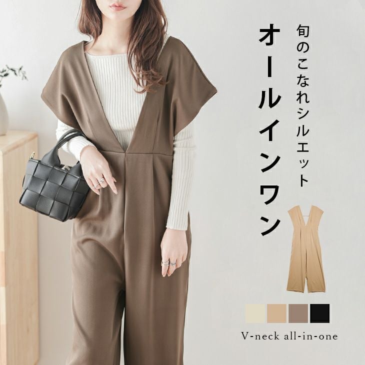 オールインワン Vネック レディース こなれシルエット ポケット オールインワン Vネック レディース こなれシルエット フェイクポケット おすすめ おしゃれ ブラック メール便 2025秋新作 【lssr210-709】【即納:1-5営業日】【送料無料】メ込2