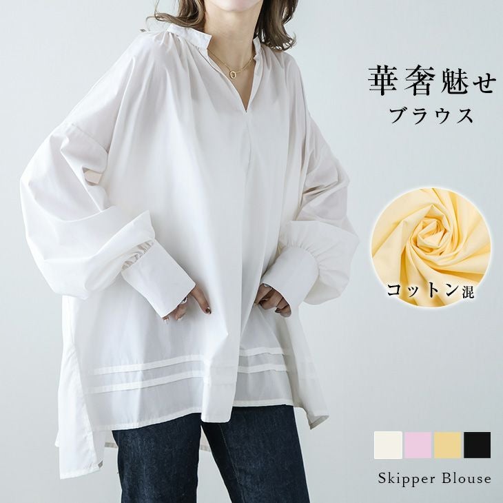 ブラウス スキッパー 長袖 抜け感 コットン混 ブラウス スキッパー 長袖 抜け感 コットン混 スタンドカラー トップス レディース おすすめ おしゃれ ブラック フリーサイズ メール便 2025秋新作 【lstp210-350】【即納:1-5営業日】【送料無料】メ込1