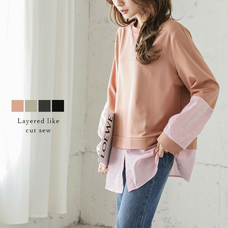 トップス カットソー 長袖 レイヤード風 チュニック丈 トップス カットソー 長袖 レイヤード風 チュニック丈 体系カバー 華奢見せ レディース おすすめ おしゃれ フリーサイズ メール便 2025秋新作 【lstp211-342】【即納:1-5営業日】【送料無料】ユ込3