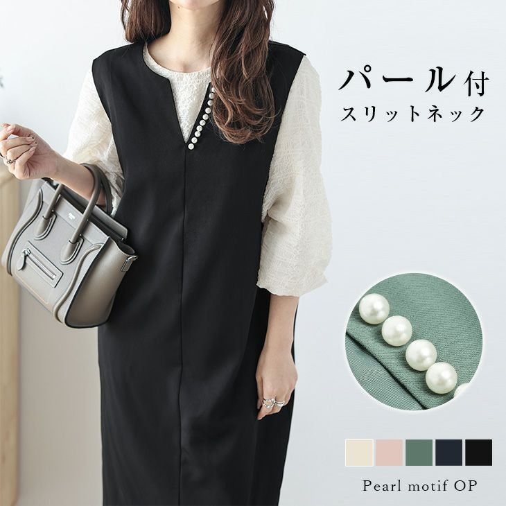 ロングワンピース Iライン パール付き スリットネック ノースリ ロングワンピース Iライン パール付き スリットネック ノースリーブ レディース 体型カバー おすすめ おしゃれ ブラック メール便 2025秋新作 【lswp210-64a】【即納:1-5営業日】【送料無料】メ込2